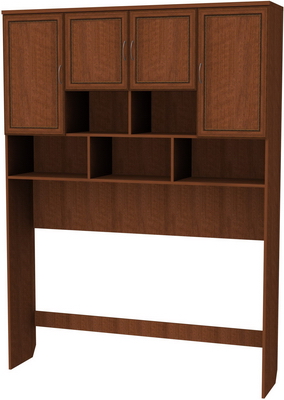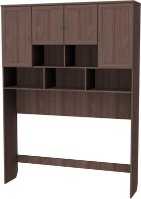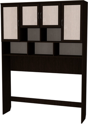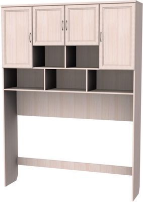 Сделать любое помещение просторным и удобным можно с помощью антресоли, которая будет хорошо смотреться в кабинете, гостиной и даже спальне. За счет высоких боковых стенок под нее уютно впишется стол, диван или кровать, а на полках можно будет разместить документы, книги, аксессуары и сувениры. Верхняя часть изделия состоит из множества секций с полками и отделениями с дверцами. Антресоль можно использовать как дополнение к рабочему столу с целью экономии пространства в комнате, а также, с целью хранения необходимых вещей и документов, которые ранее загромождали стол. Изготовленная она из высококачественного ДСП с отделкой под ольху, дуб или ясень, что делает такую мебель не только прочной, долговечной, но и презентабельной.