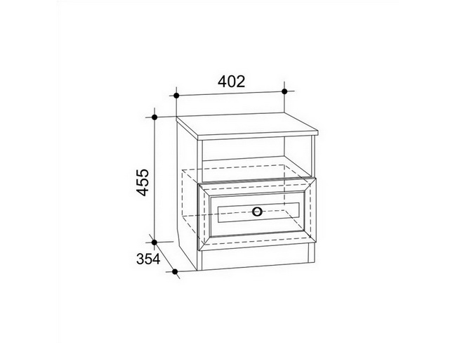 Состоит из: тумбы с выдвижным ящиком и открытой полкой.