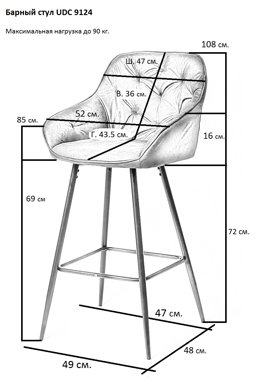Барный стул UDC 9124  из микрофибры темно-коричневого цвета.