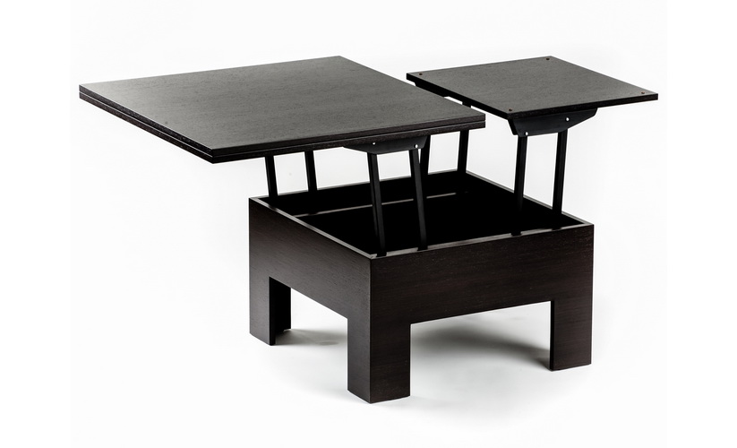 Особенностью данной модели является то, что в раскрытом положении размеры столешницы заметно больше размеров подстолья, что обеспечивает больший комфорт для сидящих за столом людей.