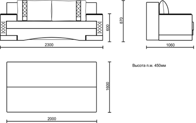 Размеры Н800/2360/900, спальное место: 1450/2000