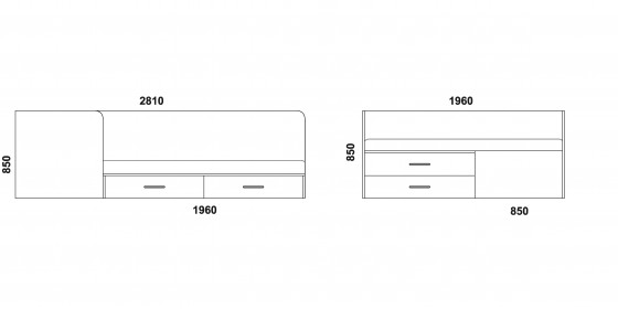 1. Низкая кровать: 850*1960*850 мм.