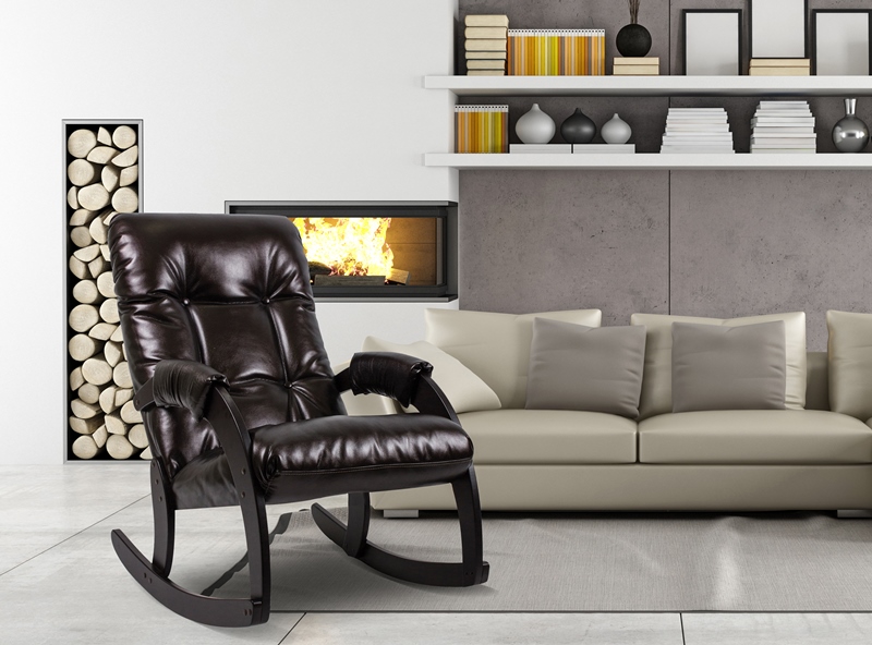 Кресло-качалка из экокожи/ткани и дерева впишется в любой интерьер: современный или классический.