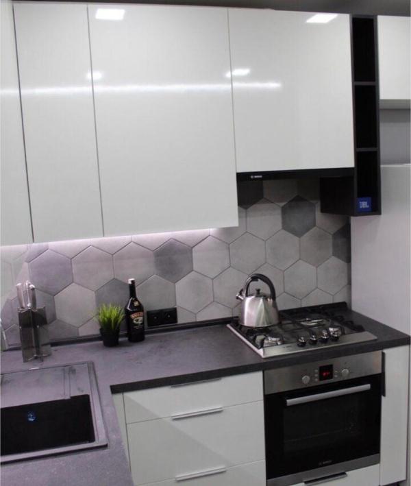 Цвет корпуса, фасада, столешницы, стекла, ручки могут быть практически любыми, цена при этом не поменяется. Кухня может быть оснащена доводчиками (Blum, Boyard).