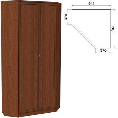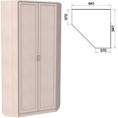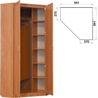 Без удобного, вместительного одежного шкафа невозможно представить себе спальню или гостиную. Но, как правило, большинство шкафов размещаются по стене, тогда как мы предлагаем вам угловую модель, которая займет совсем немного места, а пользу принесет существенную. Этот практичный угловой шкаф с двумя дверями оборудован надежной штангой и несколькими полками, которые тоже предназначены для хранения одежды и обуви. Штанга очень удобна в применении, когда нужно быстро достать костюм или брюки или развесить их.