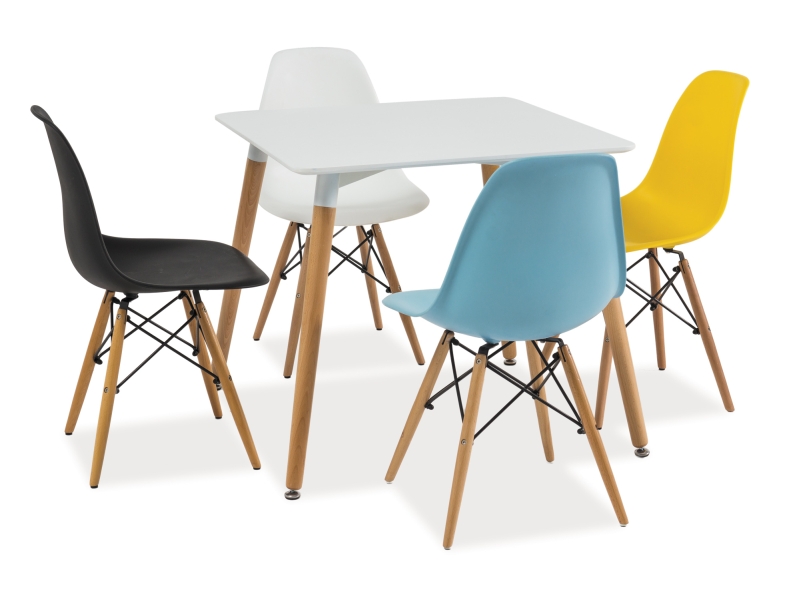 Столешница ярко-белого цвета изготовлена из МДФ, эффектно сочетается с деревянными ножками, которые оформлены в естественной цветовой гамме.
